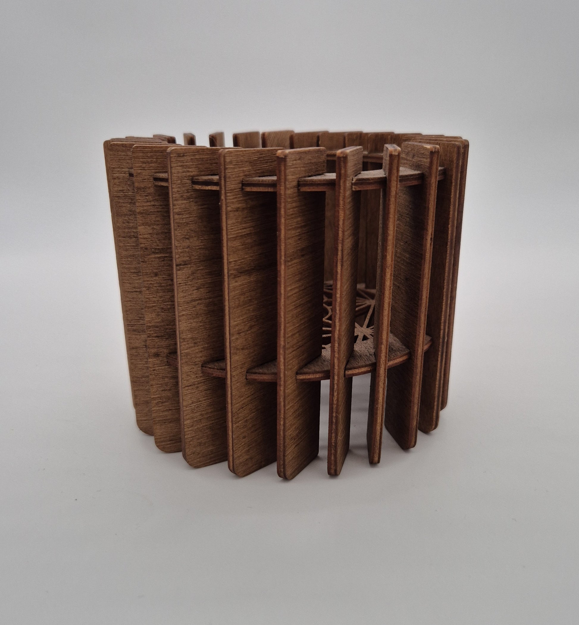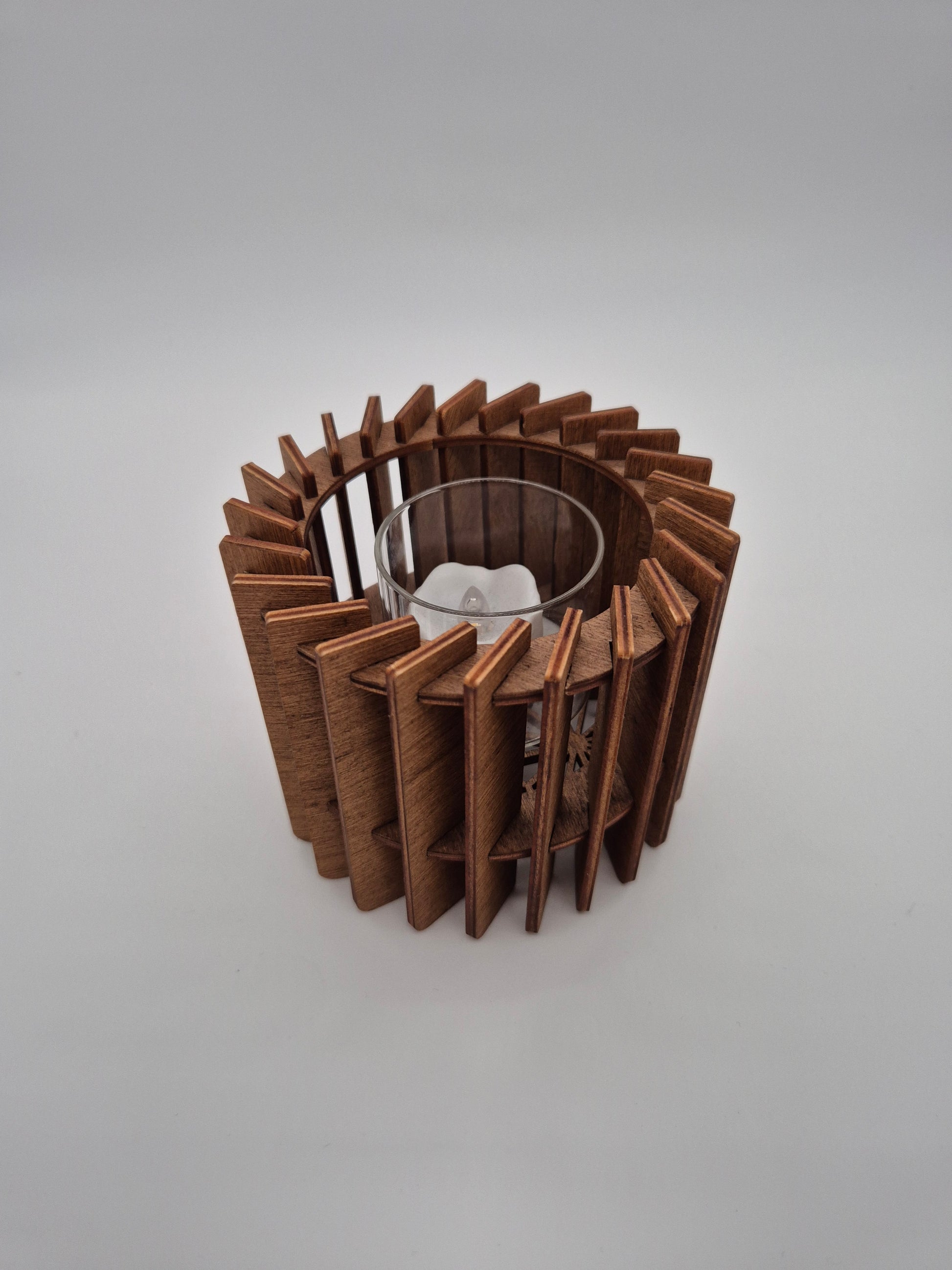 Die kleine Teelicht Lampe aus Holz ist in Natur oder Nussbaum erhältlich und misst 10 cm in der Höhe sowie 12 cm im Durchmesser. Diese Lampe schafft eine gemütliche Atmosphäre und bringt natürlichen Charme in jeden Raum. Nutzen Sie sie sicher mit LED-Teelichtern oder platzieren Sie ein Teelicht in einem Glas – Glas und Teelicht sind nicht im Lieferumfang enthalten.